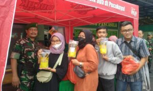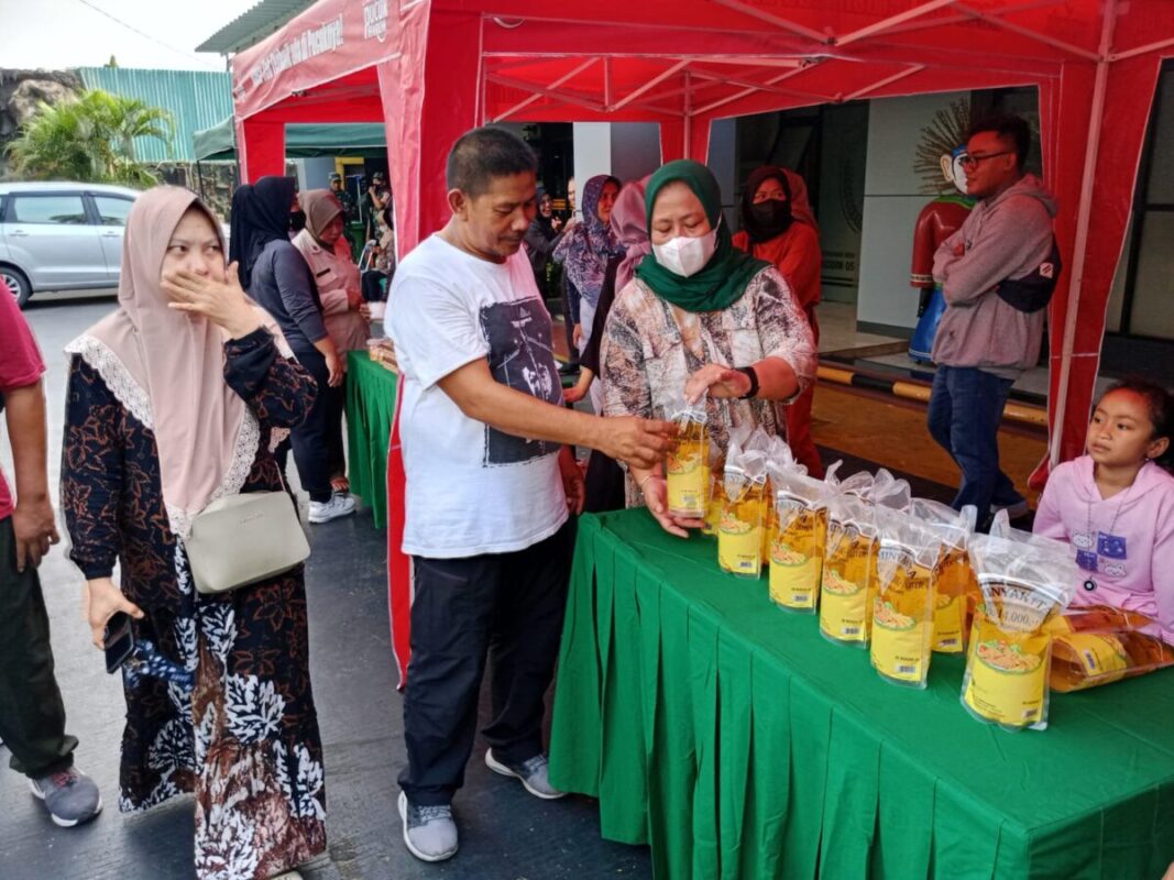Ibu Lestari salah satu perwakilan UMKM dari Koramil 06/KD yang menjual minyak goreng kemasan mengucapkan terima kasih bisa berjualan di Bazar Murah Kodim 0503/JB “Alhamdulilah Minyak Goreng Murah yang saya jual ludes diborong para pengunjung Bazar Murah Kodim 0503/JB” kata Ibu Lestari (Pendim 0503/JB)