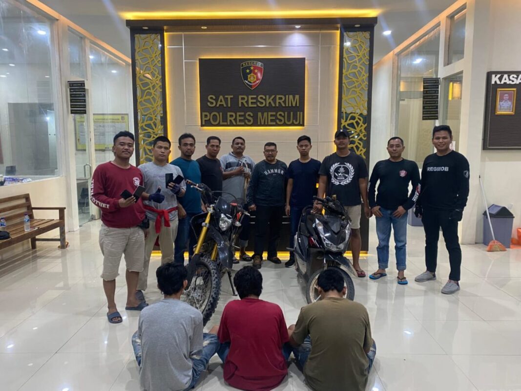 Saat ini para Pelaku beserta Barang Bukti 1 (satu) Unit Sepeda Motor Merk Honda BEAT Deluxe warna Hitam tanpa Nopol, 1 (satu) Unit Sepeda Motor Merk Honda CRF Warna Hitam, Nopol : BE 4379 LB, 1 (satu) Unit Handphone Merk OPPO A54 warna Abu – Abu, 1 (satu) Unit Handphone Merk VIVO Y21i Warna Biru Metalik dengan Case berwarna bening, 1 (satu) Unit Handphone Merk OPPO A16 warna silver, 1 (satu) Unit Handphone Merk OPPO A31 Warna Hitam, telah di amankan di Mapolres untuk pemeriksaan lebih lanjut. Pungkasnya.