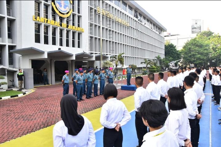 MEDIAPATRIOT.CO.ID – TNI AL-Dispenlantamal3. Komandan Pangkalan Utama TNI AL (Danlantamal) III Jakarta Brigjen TNI (Mar) Harry Indarto, S.E., M.M. selaku Ketua Panitia Daerah (Panda) Lantamal III Jakarta mendampingi Kepala Dinas Pengamanan dan Persandian Angkatan Laut (Kadispamsanal) Laksma TNI Yudhi Bramantyo N.S. memberikan pengarahan kepada para calon Taruna (Catar) AAL sebelum melaksanakan sidang Penentuan Akhir (Pantukhir) tingkat daerah Panda Lantamal III Jakarta bertempat di lapangan apel Mako Lantamal III Jakarta Jl. Gunung Sahari No. 2 Ancol, Jakarta Utara, Kamis (22/06/2023).