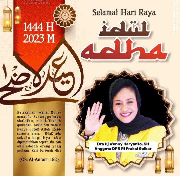 Dra Hj. Wenny Haryanto, SH Anggota DPR RI Fraksi Golkar Mengucapkan Selamat Hari Raya Idul Adha 1444 H / 2023 M