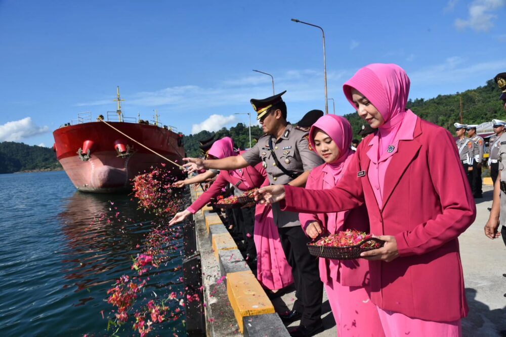 Kolonodale – Upacara tabur bunga di laut yang digelar di Kawasan Pelabuhan Kolonodale, Kecamatan Petasia, Kabupaten Morowali Utara dipimpin langsung oleh Kapolres Morowali Utara AKBP Imam Wijayanto, S.I.K., M.H. Selasa (27/06/03).