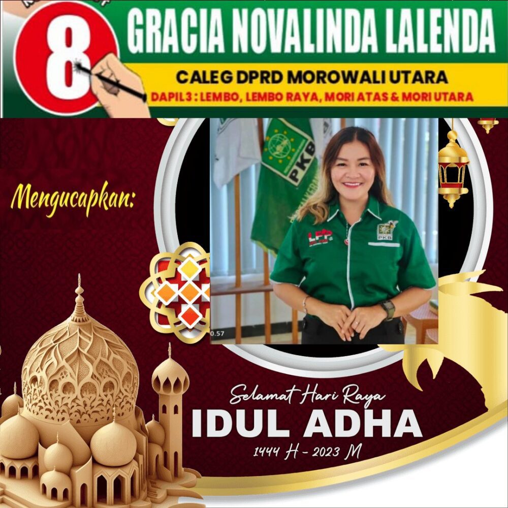GRACIA NOVALINDA LALENDA Caleg DPRD Morowali Utara Mengucapkan Selamat Hari Raya Idul Adha 1444 H / 2023 M