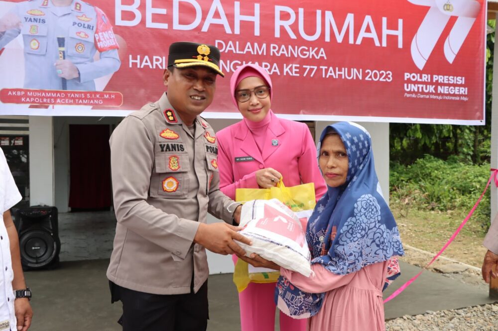 ACEH TAMIANG, MPI – Kapolres aceh tamiang, AKBP Muhammad Yanis, SIK, MH, serahkan sekaligus meresmikan rumah warga yang dibedah oleh polri dalam rangka Hari Bhayangkara ke 77 tahun 2023.