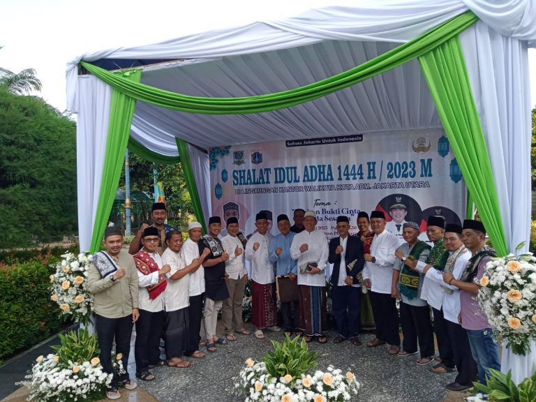 Jakarta,- mediapatriot.co.id Ratusan warga bersama Aparatur Sipil Negara (ASN) melaksanakan salat Iduladha di Masjid Babussalam Kantor Walikota Kota Administrasi Jakarta Utara, Kamis (29/06/2023). Adapun tema yang diangkat bertema ‘Kurban Bukti Cinta Kepada Sesama’.