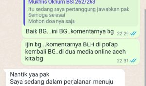 Meminta setetmen dan juga komentar darinya “Mukhlis”, namun. Malah oknum pegawai bank bsi kabupaten aceh timur tersebut, merespon dan membalasnya lewat selular chat whatsappnya. Yang diterima oleh kalangan wartawan/awak media online tersebut.