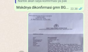 Kini terdengar oleh pihak keluarganya korban “AM” itu, sesuai adanya laporan polisi (LP). Dengan, surat tanda terima laporan polisi. Bernomor, STTLP/130/VII/2023/SPKT/POLRES ACEH TIMUR/POLDA ACEH. Pelapor “AM”, dikeluarkan di peudawa pada tanggal 13 juli 2023. Atas nama Kapolres aceh timur KA.SPKT u.b kanit II “baihaiqi” inspektur polisi dua NRP, 75080063 ditanda tangani dan bersetempel basah dalam laporan polisi tersebut.