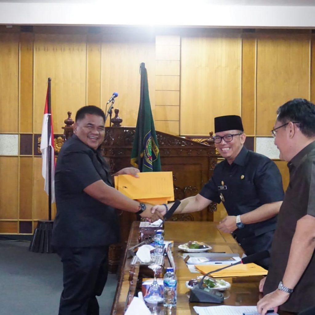 Adapun naskah Pandangan Umum Fraksi DPRD di serahkan langsung kepada Pj Bupati OKU dan Pimpinan Sidang, dalam hal ini Yoni Risdianto, SH Wakil Ketua II DPRD OKU.