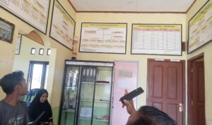 Selain itu juga awak media mendengar sekaligus melihat seorang anak kecil yang berusaha membuka pintu salah satu ruangan di kantor desa tersebut yang diduga tempat Kades, Amiludin bersembunyi didalamnya sambil memanggil-manggil “Ayah” (Kades).