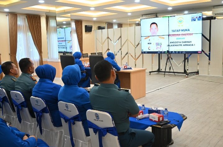TNI AL–Dispenlantamal3. Komandan Pangkalan Utama TNI Angkatan Laut (Danlantamal) III Jakarta Brigjen TNI (Mar) Harry Indarto, S.E., M.M. diwakili Wakil Komandan (Wadan) Lantamal III Jakarta Kolonel Laut (P) Whisnu Kusardianto, S.E., M.H. dan Ketua Koordinator Cabang (Korcab) III Daerah Jalasenastri Armada I (DJA) I Ny. Neneng Harry Indarto didampingi Wakil Ketua Korcab III DJA I Ny. Nuri Whisnu Kusardianto menghadiri acara tatap muka dengan Panglima Komando Armada (Pangkoarmada) I Laksda TNI Achmad Wibisono, S.E., CHRMP. selaku Pembina Daerah Jalasenastri Armada (DJA) I didampingi Ketua DJA I Ny. Ita Achmad Wibisono melalui video conference (Vicon) bertempat di ruang rapat Lantamal III Jakarta Jl. Gunung Sahari No. 2 Ancol, Jakarta Utara, Senin (21/08/2023).