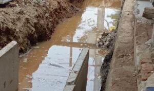 Diduga pekerjaan penggalian tidak sesuai dengan elevasi cross section/kemiringan sesuai dengan yang dipersyaratkan.Dengan tujuan, apabila terdapat sampah yang jatuh pada saluran secara terus menerus maka akan mengakibatkan tumpukan sampah dan akan mengganggu aliran air dan efeknya akan terjadi penyumbatan.