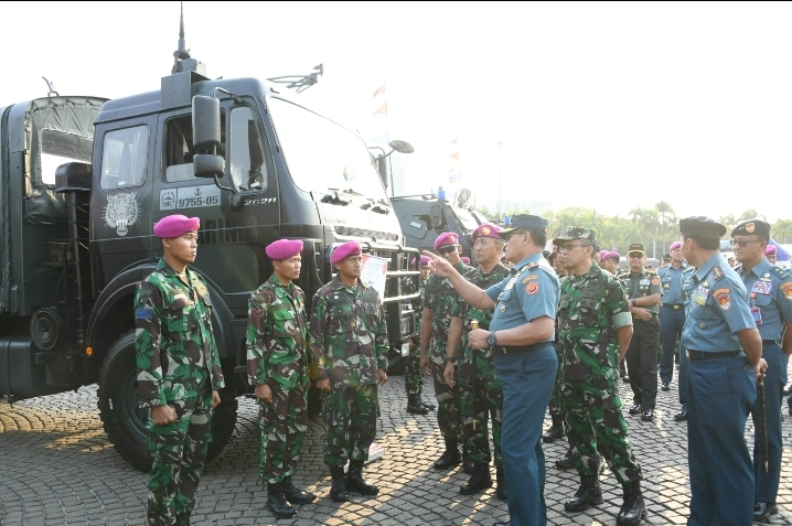 Pada kesempatan ini Panglima TNI meninjau stan dan mendengarkan penjelasan dari prajurit TNI Angkatan Laut antara lain stan kendaraan taktis, stan senjata artileri meriam 37 mm twin, stan gutiling (gutling) gun, dan stan side scan sonar (C-Max).