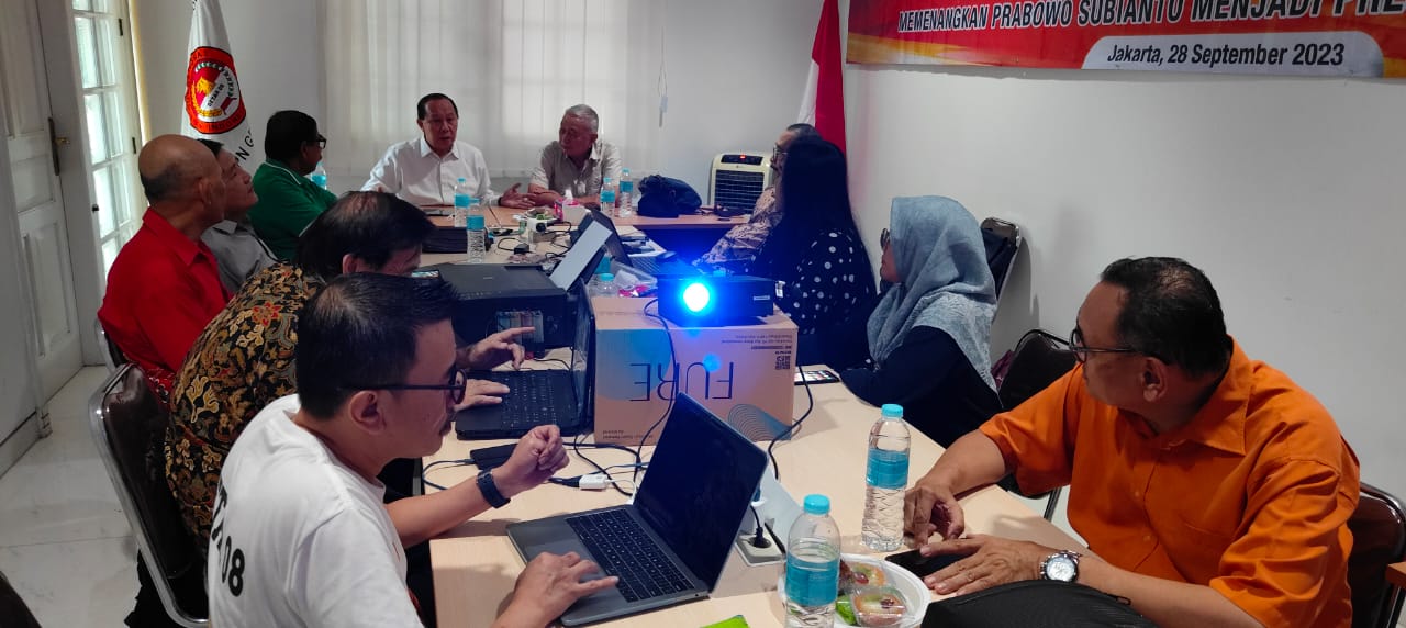 Bintek / Bimbingan Teknik Pemenangan Prabowo Gibran Kepada Pengurus Getar Nasional ( Gugus Tugas Indonesia Raya ) , oleh : Dr. Jimmy Rol Torar .SE .MM .MAP , Mayjen pur Yahya Dewan Pengawas Getar dan Brigjen Rudolof Warouw sebagai Dewan Kehormatan Getar Rabu 1 Nov 2023 di Kantor Getar , Jl. Imam Bonjol No. 25 Menteng Jakarta Pusat.