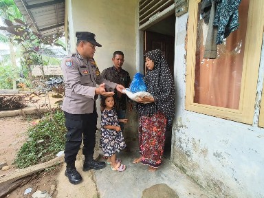 Penyaluran bantuan dilakukan secara door to door atau dari rumah ke rumah sehingga penyaluran tepat sasaran oleh anggota polsek banda alam, pada hari Jumat 19/01/2024 kemarin sore.