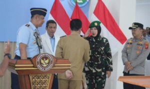 Mewakili Dandim 0624/Kab Bandung Letkol Inf Hamzah Budi Susanto, Kasdim Mayor Chb (K) Sri Nurhaeni bersama Danlanud Sulaiman Kolonel Pnb Rohmat Kusmayadi dan Bupati Bandung mengikuti peresmian 25 Rumah Sakit TNI oleh Presiden RI secara Virtual di Jalan Hercules Lanud Sulaiman, Kabupaten Bandung, Senin (19/02).