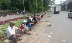 Jakarta,- mediapatriot.co. id Puluhan petugas Penanganan Prasarana dan Sarana Umum (PPSU) Kelurahan Ancol menggelar aksi banting sapu dan mogok kerja di Jalan Lodan Raya, Ancol, Pademangan, Jakarta Utara,