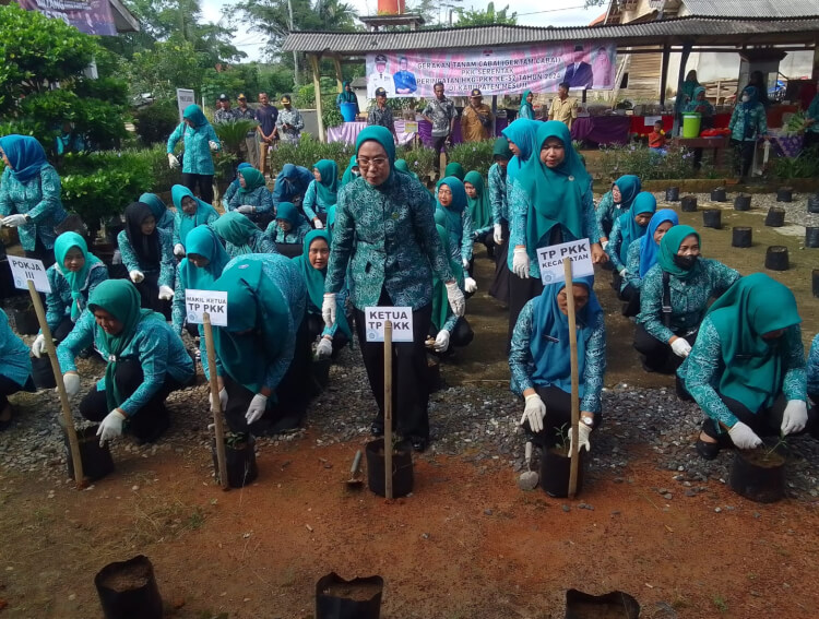 Ketua TP-PKK Kabupaten Mesuji Pori Karlia Sulpakar menjelaskan bahwa TP-PKK Kabupaten Mesuji juga ikut bersama secara virtual melakukan penanaman sebanyak 120 pohon cabai.