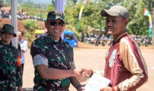 “Selain itu, TMMD juga menjadi sarana terbaik bagi TNI untuk hadir di tengah-tengah masyarakat dalam rangka menggelorakan semangat gotong royong dan energi positif untuk maju mencapai keunggulan. Sebagaimana juga terkandung dalam tema TMMD, kali ini “Darma Bakti TMMD mewujudkan Percepatan Pembangunan di wilayah.”tandasnya.