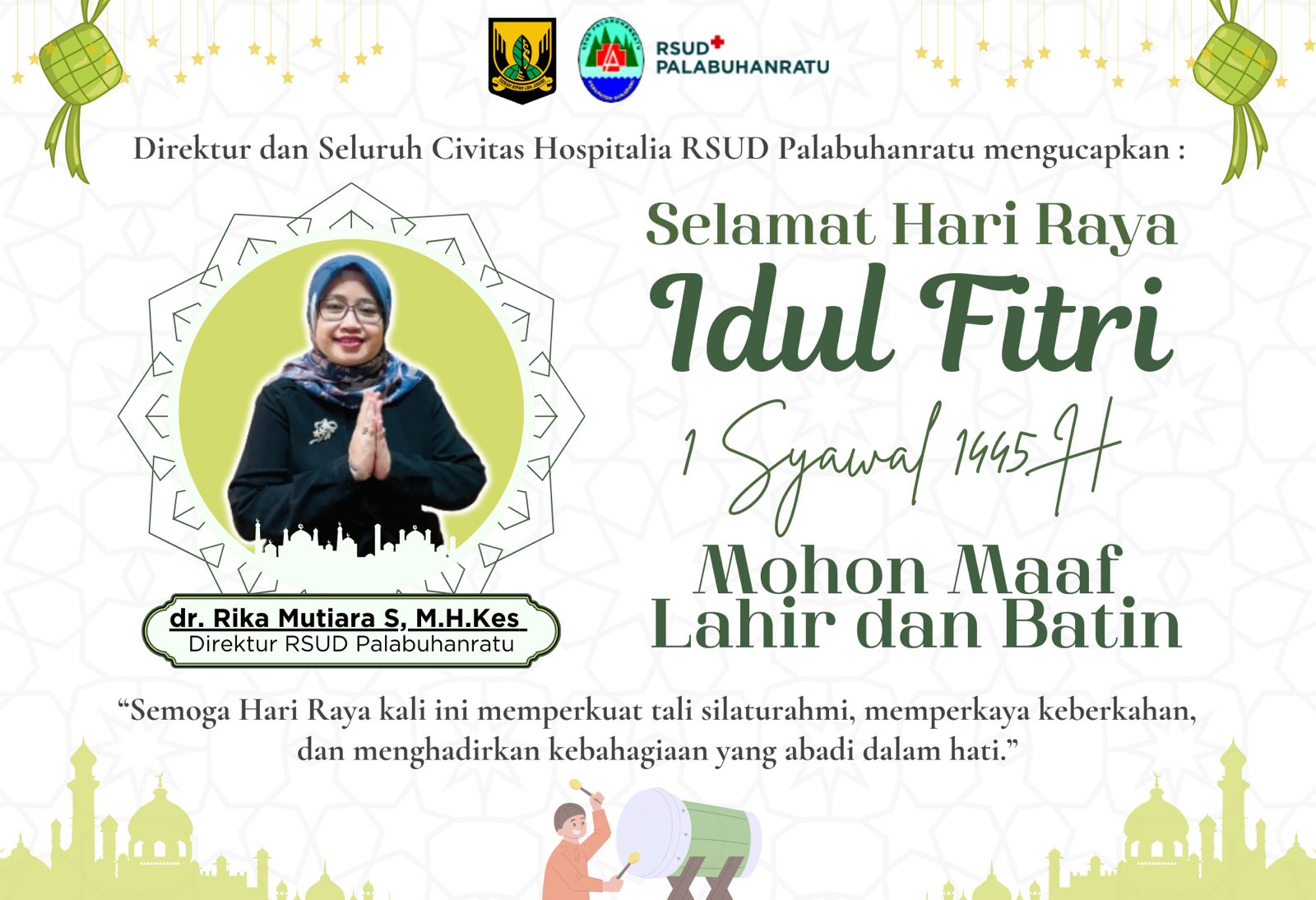 Keluarga Besar BLUD RSUD Palabuhanratu Kabupaten Sukabumi Jawa BaratMengucapkan : Selamat Hari Raya Idul Fitri 1 Syawal 1445 H/2024 M.”Mohon Maaf Lahir dan Batin”.TTDdr Rika Mutiara.S,M.H.KesDirektur