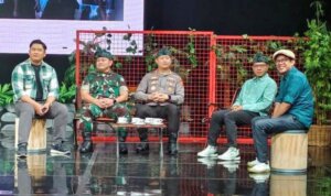 Dandim 0624/Kab Bandung Letkol Inf Hamzah Budi Susanto, bersama Bupati Bandung beserta Kapolresta Bandung menjadi Narasumber di acara Dialog Braga (Bincang Warga) dengan tema Sinergitas Pemerintah, TNI-Polri dalam Membangun Kabupaten Bandung di Studio I TVRI Stasiun Jabar Cibaduyut, pada Selasa (23/04) sore.