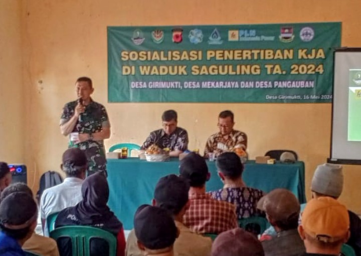 Disampaikan Dansektor 9 Kolonel Arm Hari Wibowo, sosialisasi penertiban keramba jaring apung di waduk Saguling dengan dasar Perpres no 15 tahun 2018 tentang PPPK DAS Citarum serta Pergub no 96 tahun 2022 tentang tata kelola KJA di Waduk Saguling, Cirata dan Jatiluhur.