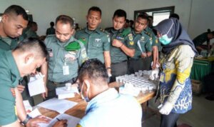 Selesai memberikan materi, dilanjutkan dengan pemeriksaan test urine kepada Prajurit Korem 062/Tn guna memastikan bebas dari Narkoba.