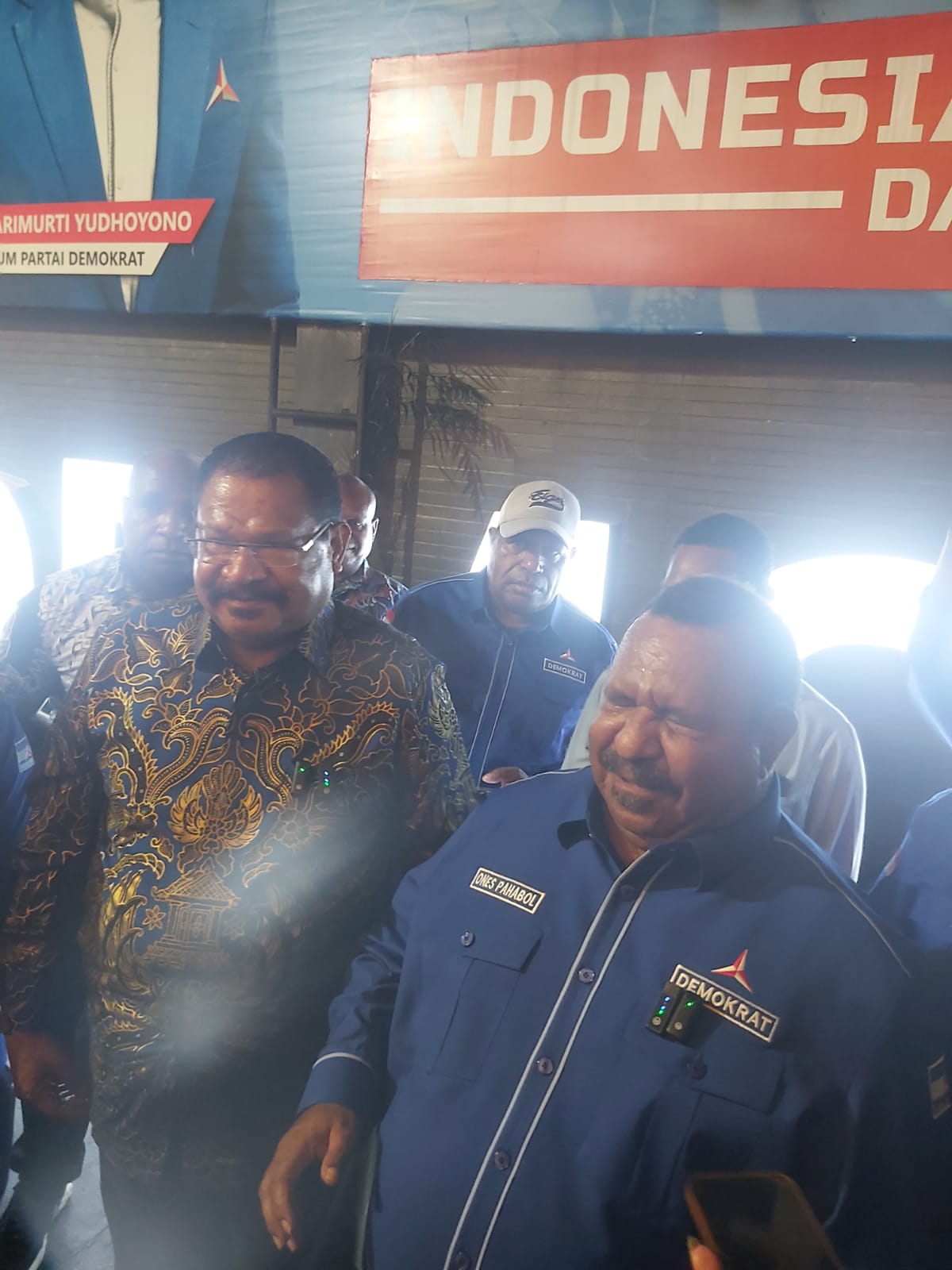 John Tabo selaku mantan Bupati Tolikara dan Membramo Raya menjelaskan bahwa pada malam hari ini tanggal 19 Juli 2024 resmi di kantor pimpinan Pertai Demokrat di Jakarta. Ketua Umum sudah menyerahkan memberikan surat keputusan resmi calon gubernur dan calon wakil gubernur provinsi Papua Pegunungan karena itu kami ingin menyampaikan dan membawa kepada seluruh masyarakat Papua Pemurungan dan seluruh intelektual, seluruh tokoh sekolah dan adik-adik generasi masa depan. Mari kita baris bersatu dalam perjalanan ini karena ini perjalanan awal kami harus dapat kepercayaan untuk meletakkan pembangunan awal oleh karena itu mari kita sama-sama bersama untuk merapatkan barisan untuk kita memenangkan Pilkada ini. Oleh karena itu kami menyampaikan kepada ketua umum Partai Demokrat yang sudah beri kepercayaan kepada kami berdua Bapak Ones dan saya di malam ini. Kami akan pegang teguh kepercayaan yang amanah dan diberikan kepada saya dan Bapak Ones untuk membimbing bersama-sama kita membangun daerah Papua Pegunungan yang damai yang aman. Kita orang Papua Pegunungan ingin maju sama seperti saudara-saudara yang lain di provinsi lain di Indonesia.
