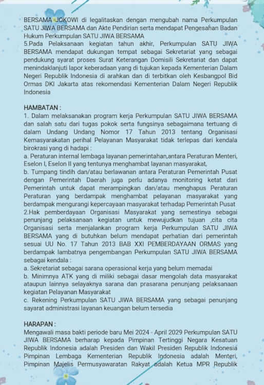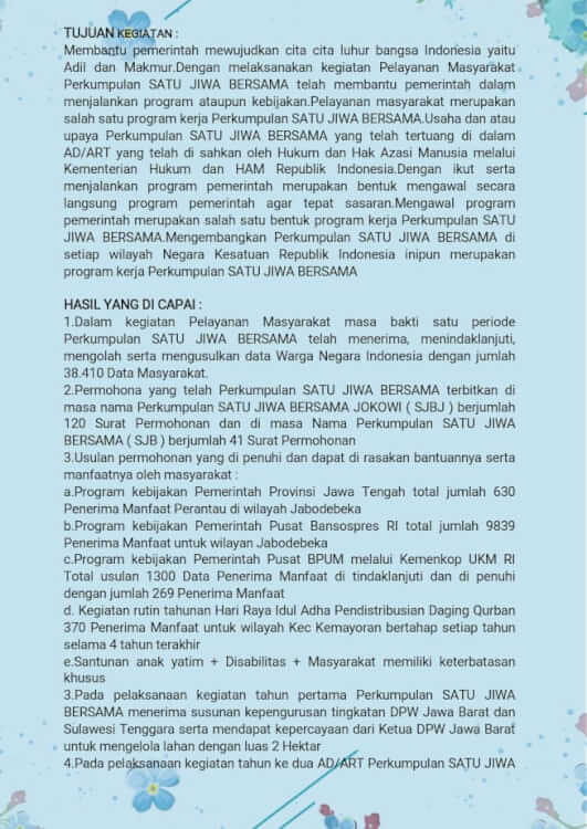 2.Pemerintah memberikan hak pemberdayaan Ormas kepada Ormas SJB yang telah melaksanakan program kerja lima tahun