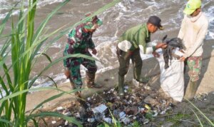 Pembersihan ini kata Serma Jajang, berhasil mengangkat sekitar 5 kubik sampah berbagai jenis seperti plastik, botol air mineral, Pampers juga kemasan makan ringan.