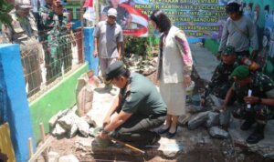Ground breaking dilakukan Dandim bersama Ketua Persit KCK Cabang XLIV sebagai tanda di mulainya rehabilitasi sekolah.