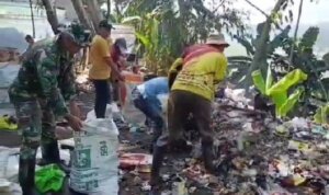 Satgas Citarum bersama warga bergerak, satu persatu sampah dimasukan ke dalam karung dengan menggunakan gacok sebelum diangkat dan dimusnahkan mesin olah runtah, Jumat 25 Oktober 2024.