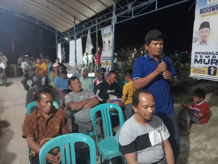 Jeffisa Putra sebagai calon Bupati Morowali Utara menyampaikan kepada seluruh masyarakat desa Mayumba akan memenuhi janji dan insya Allah akan merealisasikannya, apabila terpilih sebagai pemimpin di Morowali Utara.