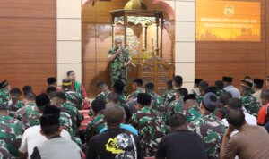 Batalyon Arhanud 6/BAY menggelar acara doa bersama lintas agama di Masjid Jami’ Al Izzah Sebagai bagian dari upaya mempererat hubungan antar umat beragama Islam serta membangun kebersamaan usai pelaksanaan sholat Jumat berjamaah, pada hari ini, Jumat, 24 Januari 2025.