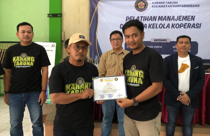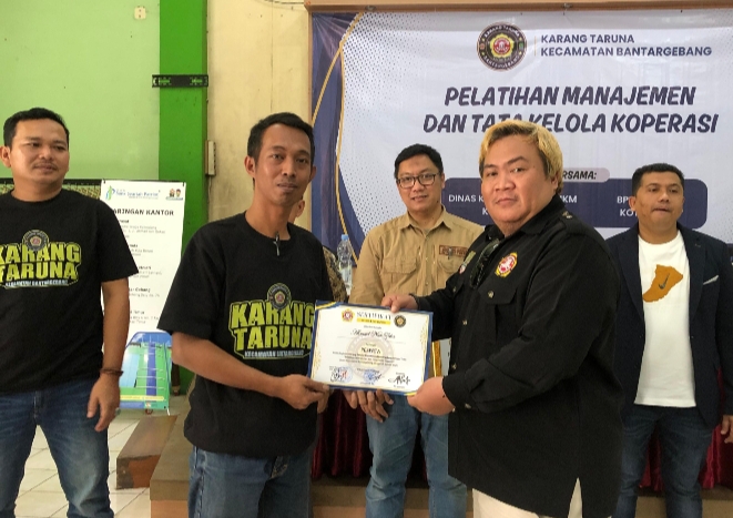 Puluhan pemuda yang tergabung dalam Karang Taruna di wilayah Kecamatan Bantargebang mengikuti Pelatihan Manajemen dan Kelola Koperasi pada Minggu (26/1).