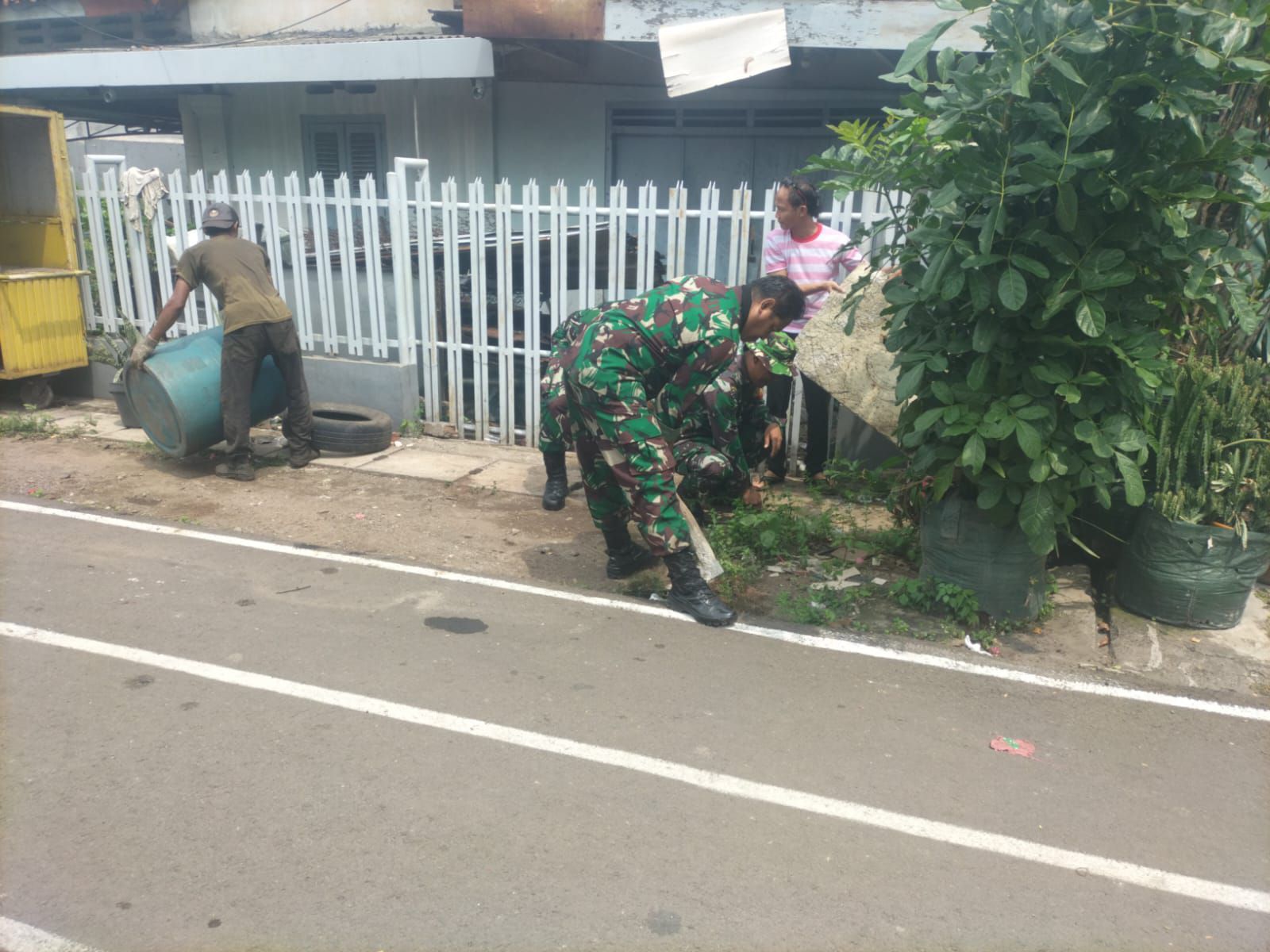 Babinsa yang terlibat langsung melakukan kerja bakti sebanyak 4 personil di antaranya, Sertu Gatot Sunaryo, Sertu Amad Dinah, Serda Afif Ashari dan Koptu Syah Bandar.