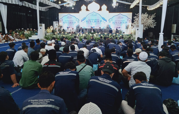 Segenap karyawan dari perusahaan-perusahaan yang tergabung dalam.HZS Group mengikuti acara berbuka puasa bersama (Bukber), Senin (10/3). Kegiatan ini digelar di halaman PT Pengolahan Limbah Industri Bekasi (PLIB) yang berlokasi di Jalan Pangkalan II Kelurahan Sumurbatu, Kecamatan Bantatgebang, Kota Bekasi.