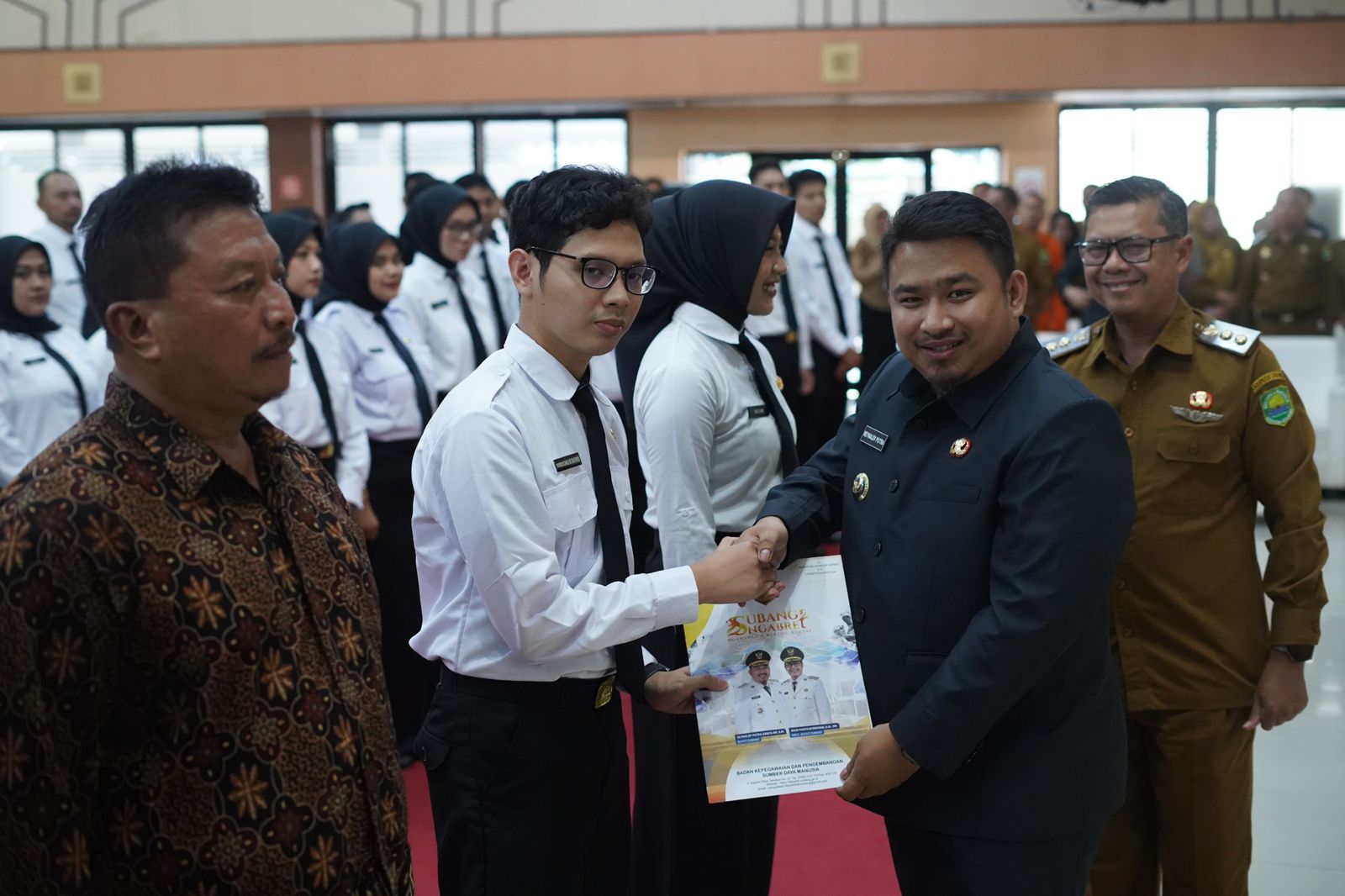 SUBANG,MediaPatriot.Co.Id – Bupati Subang, Reynaldy Putra Andita, memimpin acara pelantikan 48 Calon Pegawai Negeri Sipil (CPNS) formasi tahun 2024 serta pelepasan 122 Pegawai Negeri Sipil (PNS) yang memasuki masa purnabakti. Acara yang dilangsungkan di Aula Pemda Subang ini turut dihadiri oleh Wakil Bupati Subang, Agus Masykur Rosyadi, dan berbagai elemen penting lainnya di lingkungan pemerintahan daerah.