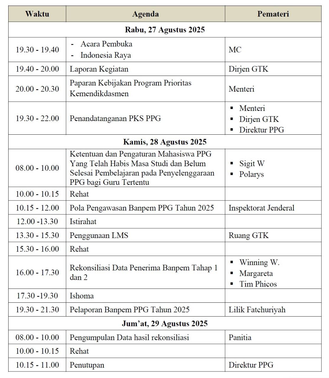 Menurut surat undangan resmi yang dikeluarkan Direktorat Jenderal Guru, kegiatan ini didasarkan pada Surat Direktur Pendidikan Profesi Guru Nomor 0997/B2/GT.00.08/2025 tanggal 23 Agustus 2025. Penandatanganan ini menjadi momentum penting karena akan menjadi acuan penyelenggaraan PPG Tahap 1 dan Tahap 2 tahun 2025.
