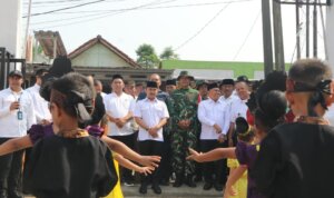 The arrival of Bekasi Regent Ade Koswara Kunang and Commander of Kodim 0509/Bekasi Lt. Col. Arh Sabdo Aji Wibowo was warmly welcomed by preschool children dressed in traditional costumes, accompanied by cultural dances symbolizing the spirit of cooperation and unity within the local community.