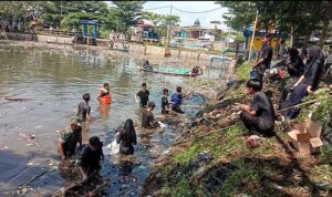 RATUSAN Masyarakat berbaur bersama Satgas Citarum sektor 2 dan Pemerintah membersihkan sampah dipermukaan sungai Citarum Taman Air Bojongsoang, Jum’at 31 Oktober 2025.