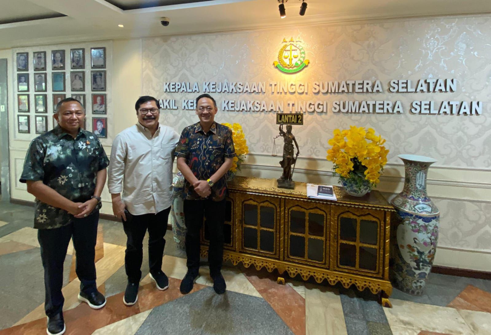 Bertempat di ruang kerja Kejaksaan Tinggi Sumatera Selatan, Palembang, Jumat (7/11/2025), Dr. Jan Samuel Maringka, S.H., M.H., CGCAE diterima oleh Kajati Sumsel Ktut Sumedana, S.H., M.H. di ruang kerjanya. Pertemuan tersebut berlangsung hangat dalam suasana kekeluargaan, di mana Dr. Jan menyampaikan ucapan selamat datang dan selamat bertugas kepada Kajati Sumsel yang baru dilantik akhir Oktober lalu oleh Jaksa Agung RI.