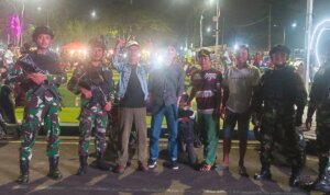 Komponen pendukung masyarakat turut terjun menyusuri titik-titik rawan dan pusat keramaian untuk memastikan kondisi wilayah tetap aman dan kondusif.
