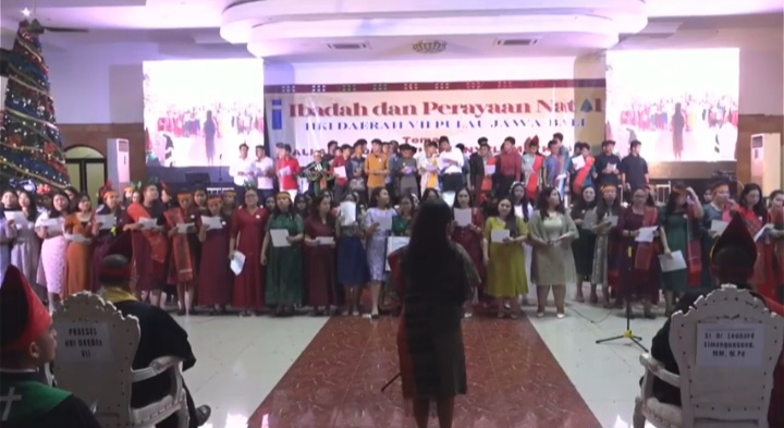 Bekasi, MediaPatriot.co.id — Perayaan Natal Huria Kristen Indonesia (HKI) Daerah VII Pulau Jawa dan Bali berlangsung penuh sukacita pada Minggu, 7 Desember 2025, bertempat di Gedung Graha Girsang, Bekasi. Kegiatan yang mengusung tema “Allah hadir untuk menyelamatkan keluarga” berdasarkan Matius 1:21–24 ini, mengajak seluruh jemaat untuk merayakan kasih Allah yang membawa pengharapan bagi setiap keluarga.
