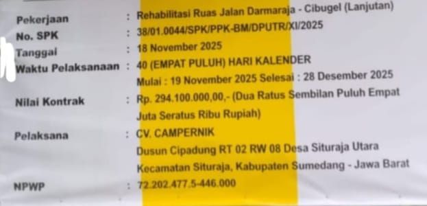 Nama Pekerjaan: Rehabilitasi Ruas Jalan Darmaraja–Cibugel (Lanjutan)