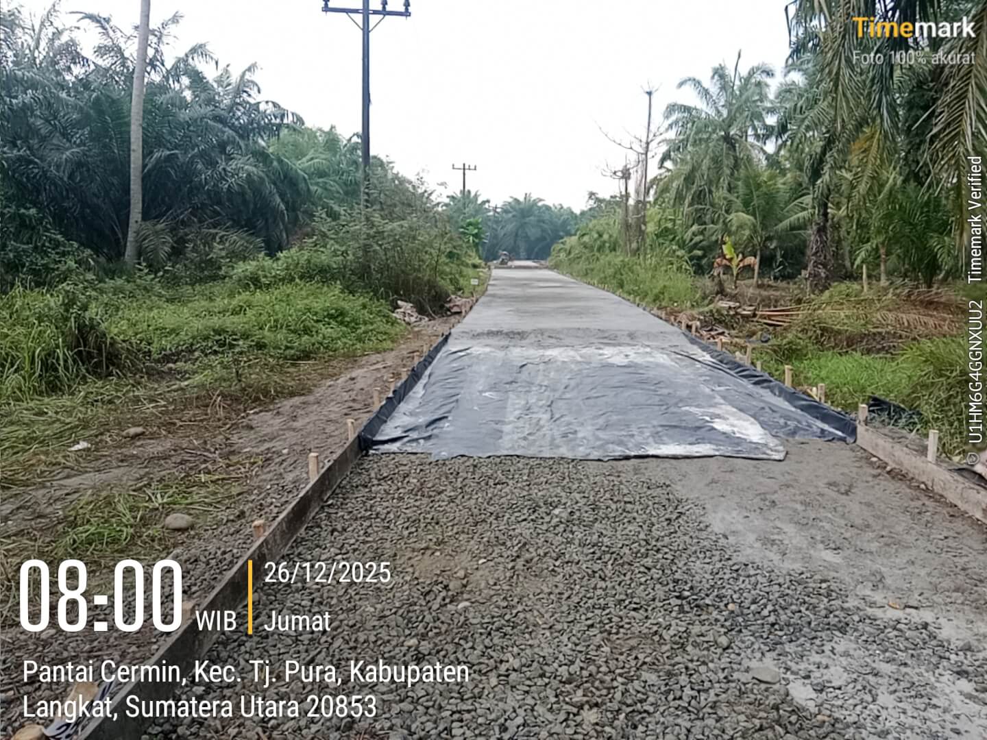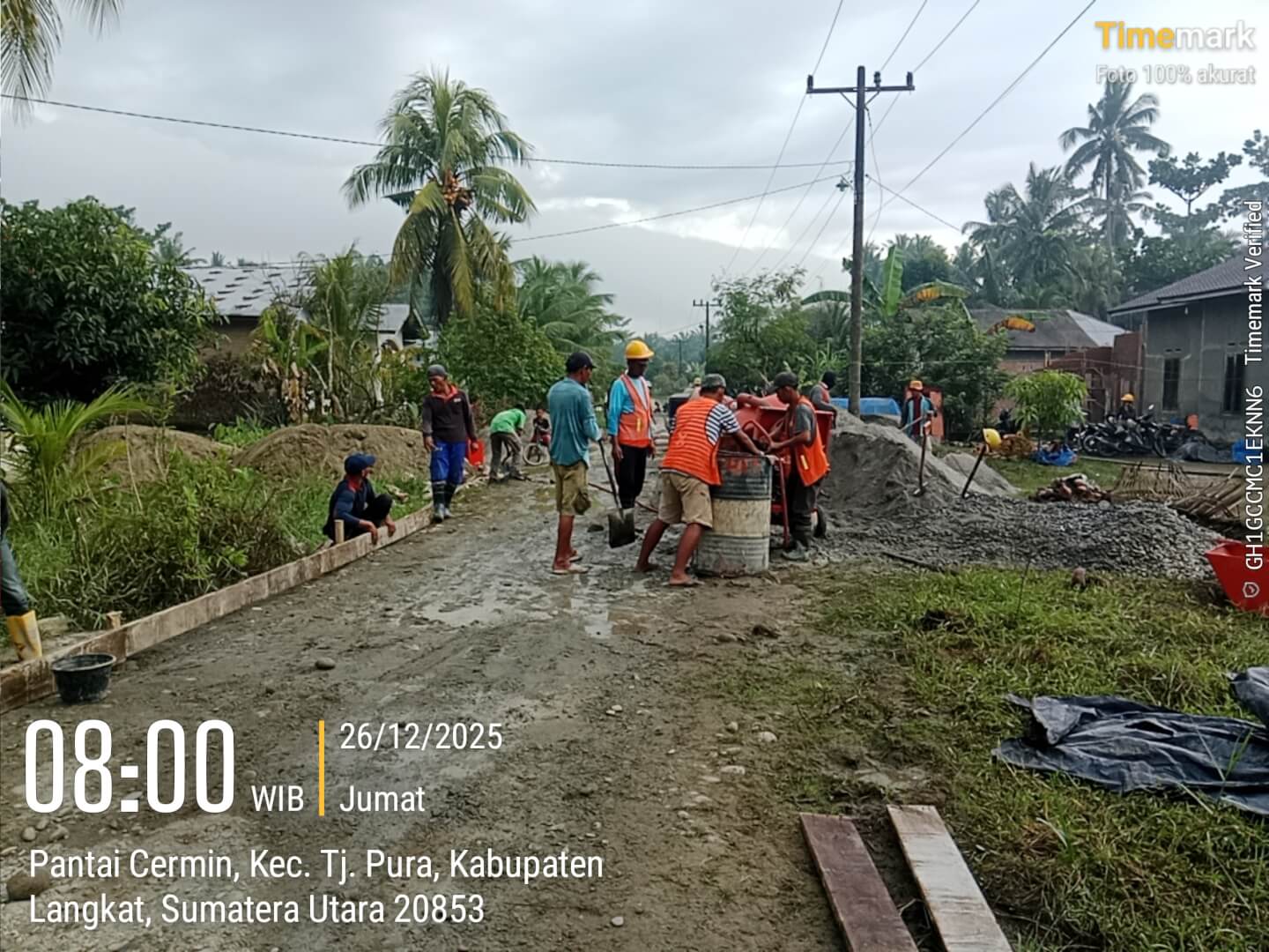 Adapun lingkup pekerjaan meliputi pembangunan jalan rabat beton sepanjang 540 meter dengan lebar 3,5 meter, yang berlokasi di wilayah Desa Pantai Cermin. Waktu pelaksanaan ditetapkan selama 70 hari kalender, dan saat ini pekerjaan telah menunjukkan progres signifikan di lapangan.