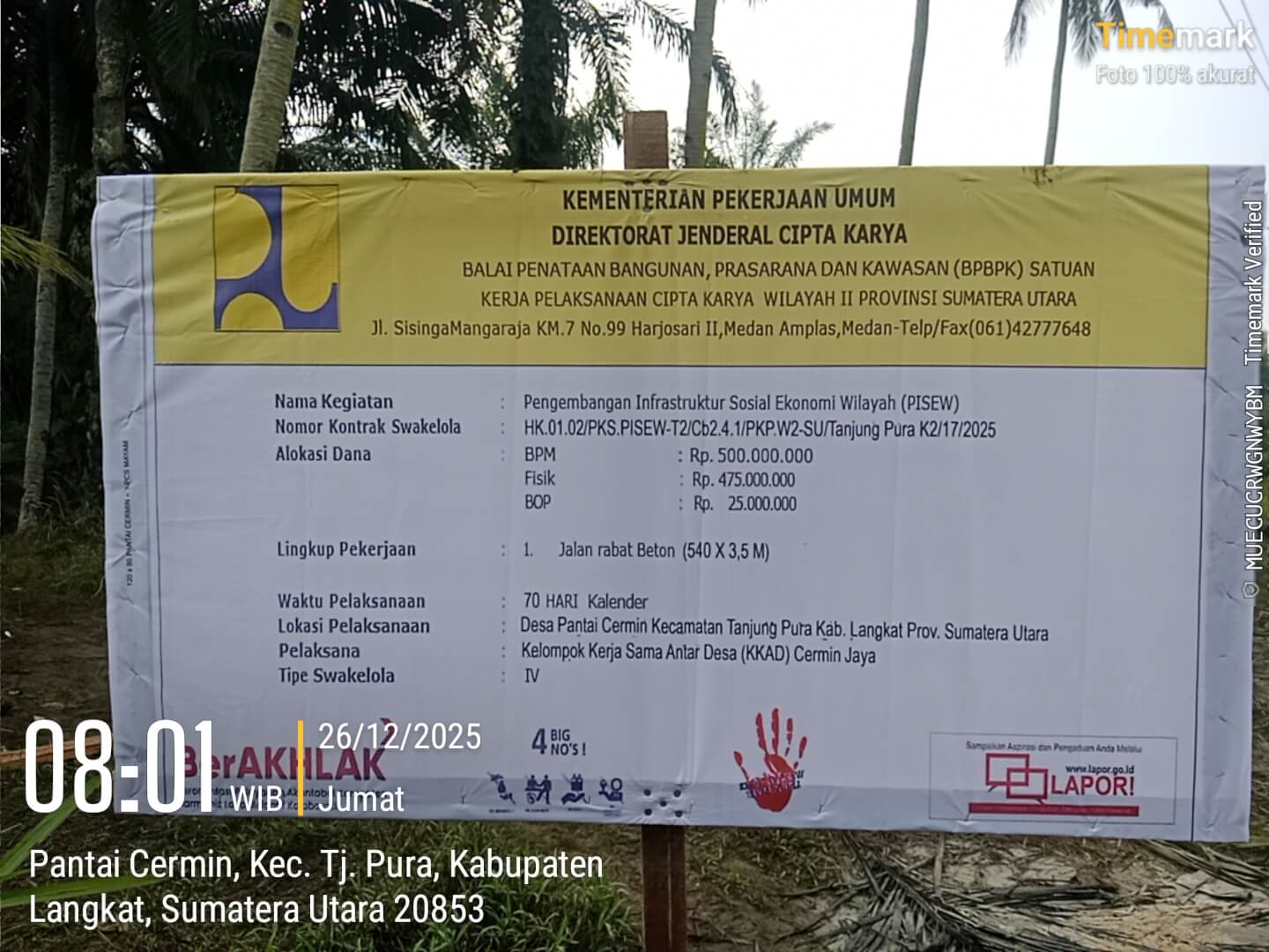 Berdasarkan papan informasi proyek di lokasi kegiatan, pembangunan jalan tersebut merupakan bagian dari Program Pengembangan Infrastruktur Sosial Ekonomi Wilayah (PISEW) Tahun Anggaran 2025.