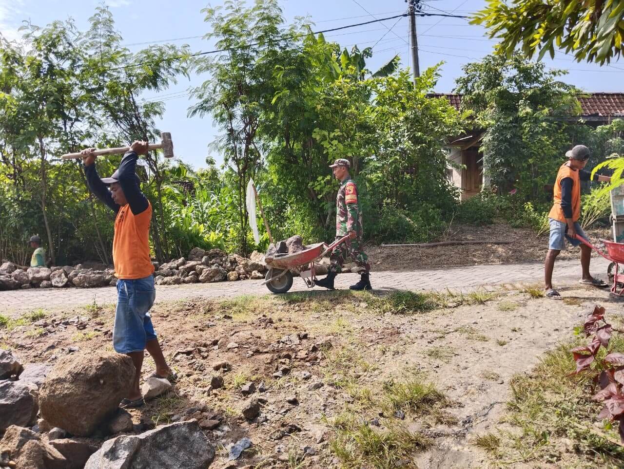 meningkatkan kualitas lingkungan desa, khususnya dalam sistem aliran air agar tidak terjadi genangan saat musim hujan. Di lokasi, tampak Serda Kenedi bahu-membahu bersama warga menggali dan membangun saluran drainase dengan penuh semangat gotong royong.