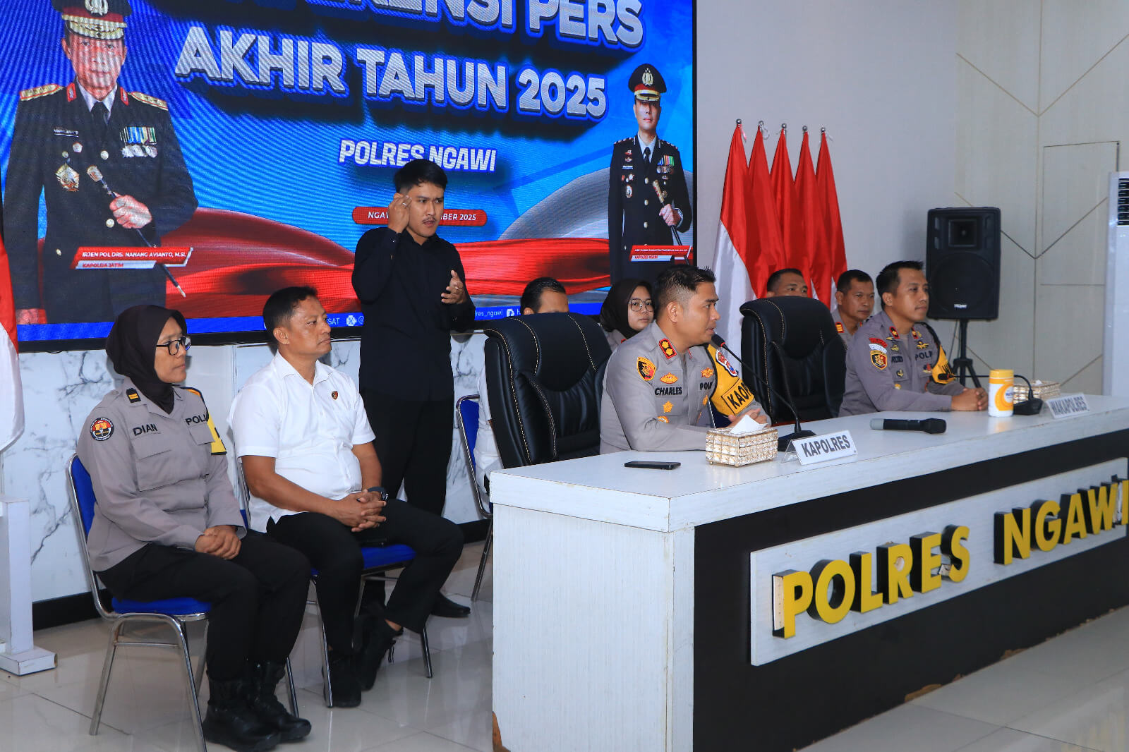 mediapatriot.co.id. Ngawi – Kapolres Ngawi AKBP Charles Pandapotan Tampubolon, S.I.K., S.H., M.H. memimpin langsung kegiatan Rilis Akhir Tahun 2025 yang digelar pada Senin (29/12/2025) di Ruang Guyup Polres Ngawi. Kegiatan ini menjadi momentum evaluasi sekaligus penyampaian capaian kinerja Polres Ngawi selama satu tahun terakhir kepada publik.