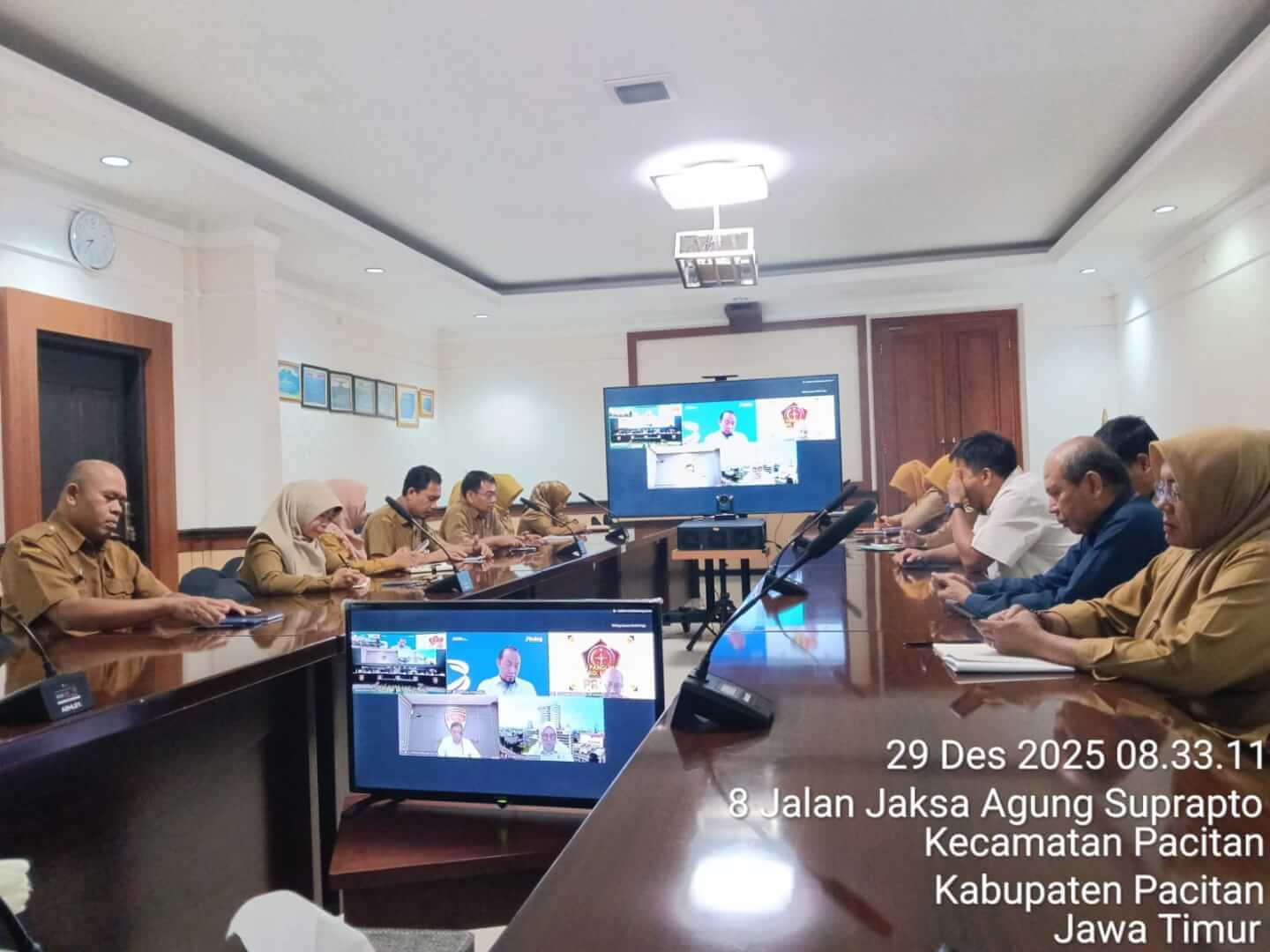 Mohon ijin melaporkan pada hari Senin, tanggal 29 Desember 2025, pukul 08.00 s.d 11.45 WIB, bertempat di Ruan Vicon Pendopo Kab. Pacitan telah dilaksanakan *kegiatan Rapat Koordinasi Terkait Pengendalian Inflasi Daerah secara daring, giat diikuti 30 orang, sebagai penanggung jawab Bpk. Dr. Ir. Heru Wiwoho Supadi Putro, M.Si. (Sekda Pacitan).