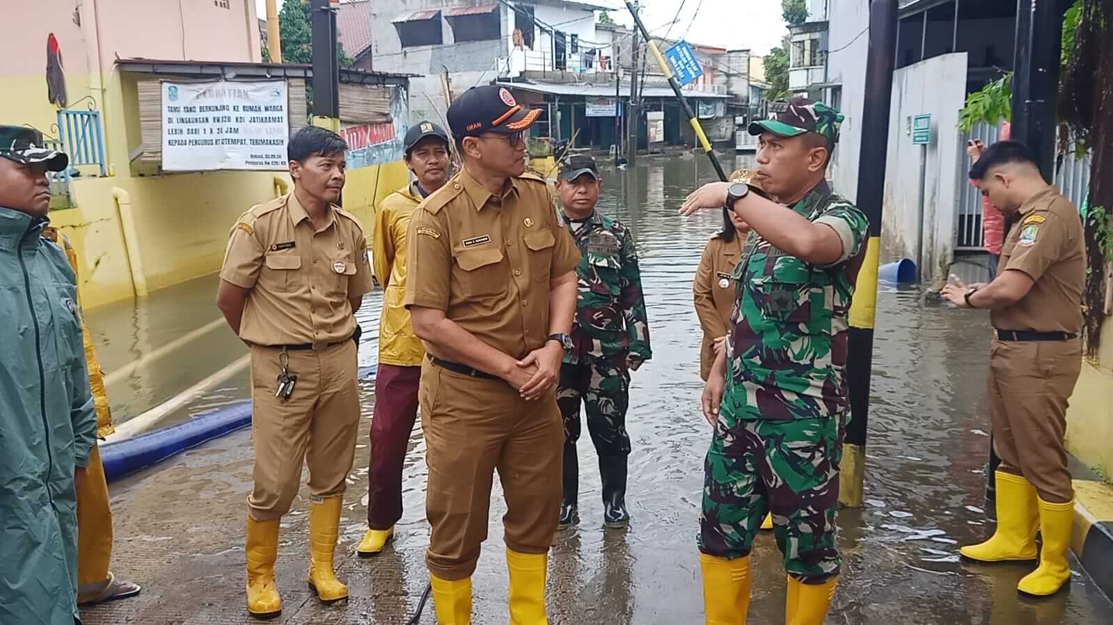 Didampingi Danramil 04/Jatiasih, Camat Jatiasih Dan Lurah Jatikramat serta tim BPBD kota Bekasi, Dandim 0507/Bekasi meninjau wilayah Kelurahan Jatikramat, tepatnya di Perumahan IKIP. Dari hasil pemantauan, ketinggian air bervariasi antara 10 hingga 60 cm dan berdampak pada tiga RW permukiman warga.