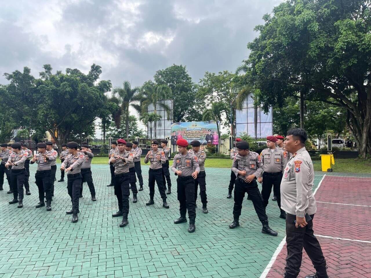 Magetan. Selain materi pengendalian massa, kegiatan juga diisi dengan senam borgol guna melatih kekuatan fisik, ketangkasan, serta kekompakan antar personel.
